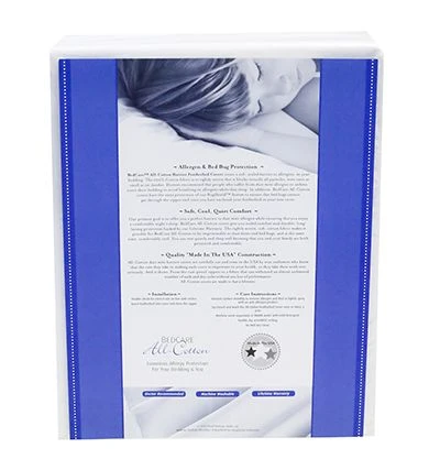 If you suffer from allergies or if you regularly wake up with congestion and a stuffed nose our BedCare™ All-Cotton Feather Bed Allergy Cover will give you relief to help you feel better and sleep more comfortably. The most doctor recommended way to reduce dust mite allergen exposure and get protection from bed bugs is to cover your bed with allergy-proof feather bed protective covers.