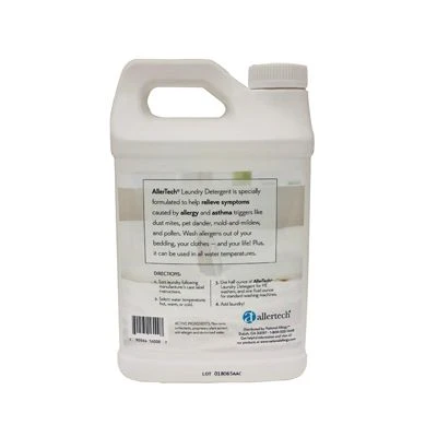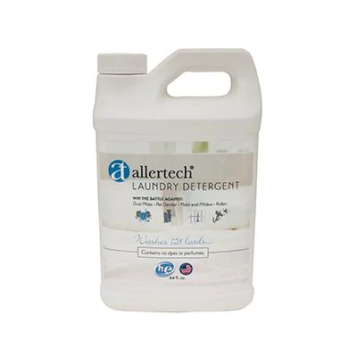 AllerTech® All-Temperature Laundry Detergent is specially formulated for allergy and asthma relief. You can now safely launder your bedding and clothing in any water temperature -cold, warm or hot, to clean and remove dust mite waste, mold and mildew allergens, pet dander, pollen, and other harmful allergens. AllerTech® Laundry Detergent is ideal for fabrics that can’t withstand frequent hot water washing’s, and cold water washing is an effective alternative. A single bottle will accommodate 64 average loads. High Efficiency (HE) washers will average 128 loads.