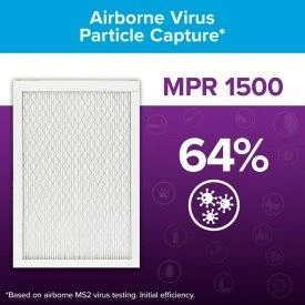 The 3M Filtrete™ 1500 Ultra Allergen Filter, for furnace, HVAC or central heating and cooling system, is a high-efficiency, pleated filter that captures 90% of large airborne particles, like pollen, mold spores and dust mite debris. This filter similarly traps smaller particles that can carry odors, pet dander, bacteria and viruses.