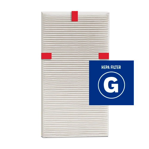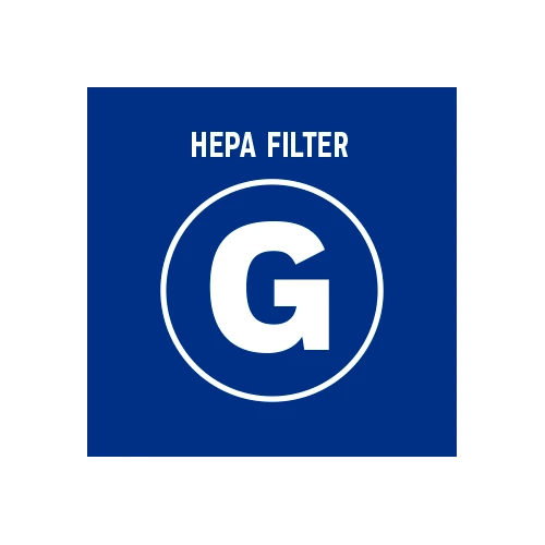 - G HEPA filter captures up to 99.97% of airborne particles, including dust, pollen, pet dander, dust mite debris, and smoke allergens down to 0.3 microns