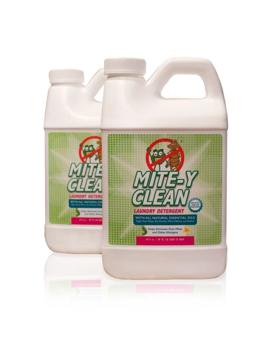 Mite-y Clean All-Natural Laundry Detergent allows you to safely wash your bedding and clothing in either standard washers or high-efficiency washers in ANY temperature – hot, warm, or cold! This high-efficiency healthy laundry detergent works to rid all of your cleanable fabric items of irritants such as dust mites, pet dander, mold, mildew, pollen, and other harmful allergens, leaving the fabrics you love naturally clean, soft, and smelling fresh. 64-oz size. Made in USA.