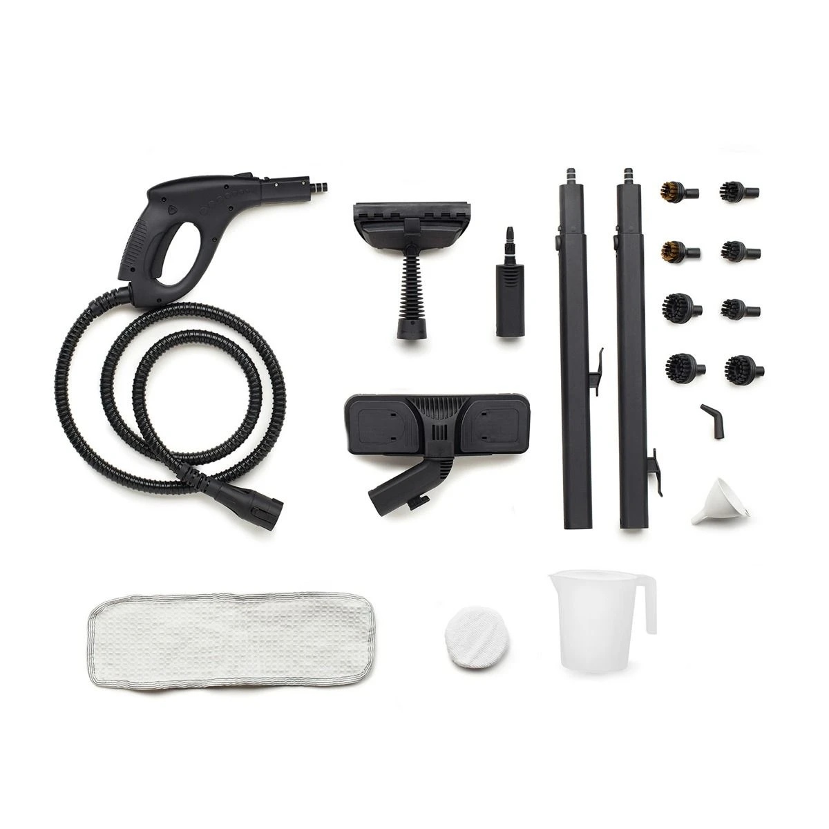 Tackle virtually any cleaning job with the Brio’s 17-Piece Accessory Kit. Even the best steam cleaners require the use of superior accessories. Whether you’re in need of a floor steam cleaner, upholstery steam cleaner, or carpet steam cleaner, the Brio includes everything you need: 2 extension hoses, 3 large and 3 small nylon brushes, 2 small brass brushes, a locking steam handle, an angled nozzle, a floor brush, a window squeegee, a microfiber floor pad, a cotton cover, accessories adapter, funnel, storage bag, and a watering jug.