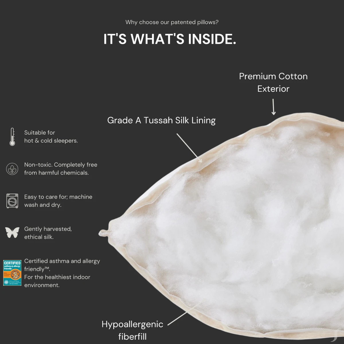 The SmartSilk™ Silk Lined Body Pillow is Certified Friendly™ by the Asthma & Allergy Foundation of America.